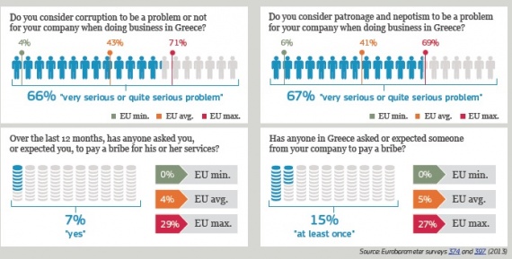 Συνολικά το 43% των επιχειρήσεων θεωρούν ότι η διαφθορά αποτελεί πρόβλημα. Το κόστος για την ευρωπαϊκή οικονομία εκτιμάται από την Κομισιόν στα 120 δισ. ευρώ ετησίως.
