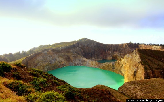 Το ηφαίστειο φιλοξενεί τρεις λίμνες με έντονα χρώματα και μοναδική ομορφιά.