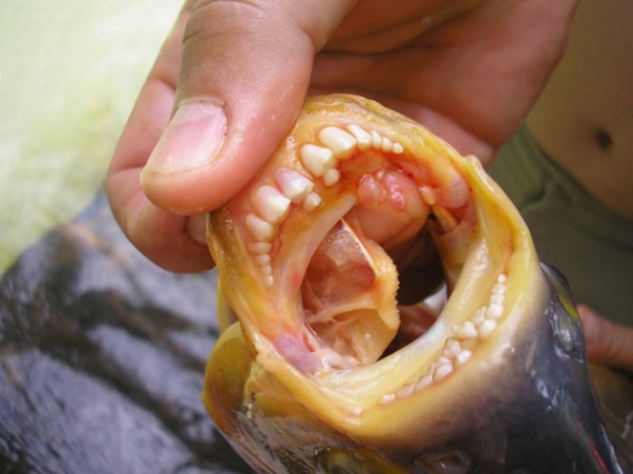 Τα δόντια της φωτογραφίας θα μπορούσαν κάλλιστα να αντιστοιχούν σε ανθρώπινη οδοντοστοιχία, όμως η φύση έρχεται γι’ ακόμη μια φορά να μας εκπλήξει καθώς αντιστοιχούν σε ένα είδος ψαριού του γλυκού νερού που συγγενεύει με τα πιράνχας και ζει σε παραποτάμους του Αμαζονίου.