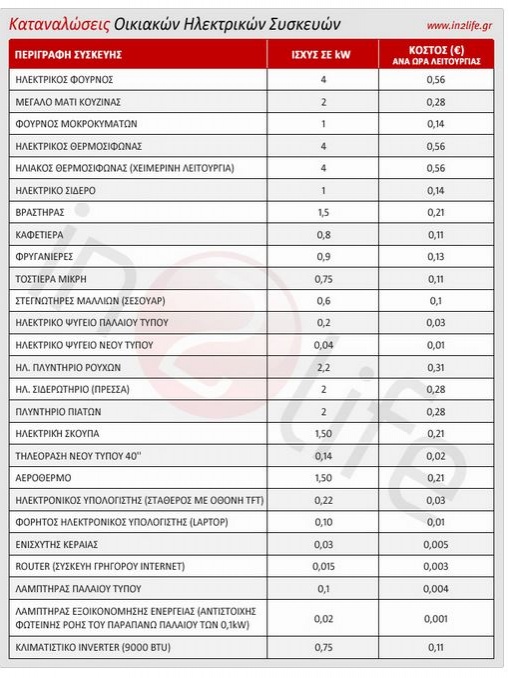 Θέλοντας λοιπόν να μάθουμε πόσο «κοστίζουν» οι συσκευές που χρησιμοποιούμε σε καθημερινή βάση στο σπίτι, το in2life.gr με βάση το τρέχον τιμολόγιο της ΔΕΗ και την ενδεικτική τους ισχύ, κατέληξε στο τελικό τους κόστος ανά ώρα λειτουργίας.