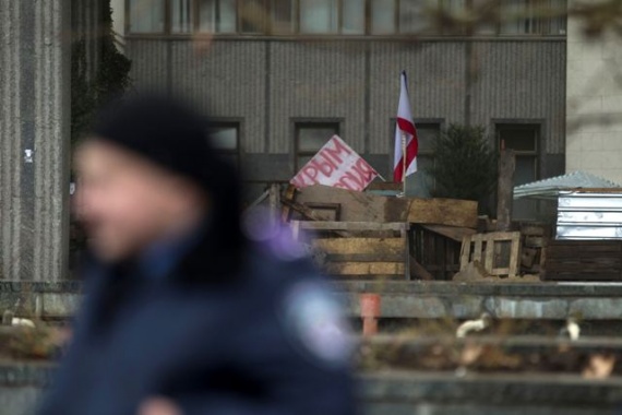 Οι Τατάροι, που υποστηρίζουν την νέα ηγεσία της Ουκρανίας και φιλορώσοι υποστηρικτές του ανατραπέντος προέδρου Γιανουκόβιτς συγκρούστηκαν χθες έξω από το τοπικό κοινοβούλιο.
