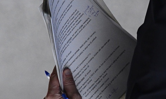 Η Βρετανία «δεν θα πρέπει να υποστηρίξει εμπορικές κυρώσεις» εναντίον της Ρωσίας εξαιτίας της επέμβασής της στην Κριμαία ή να «αποκλείσει» τους Ρώσους από το Σίτι, αναφέρει έγγραφο που κρατούσε σύμβουλος του βρετανού πρωθυπουργού Ντέιβιντ Κάμερον και το οποίο κατάφερε να φωτογραφήσει ένας φωτοειδησεογράφος.