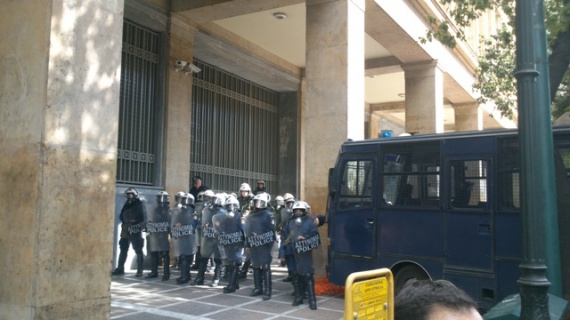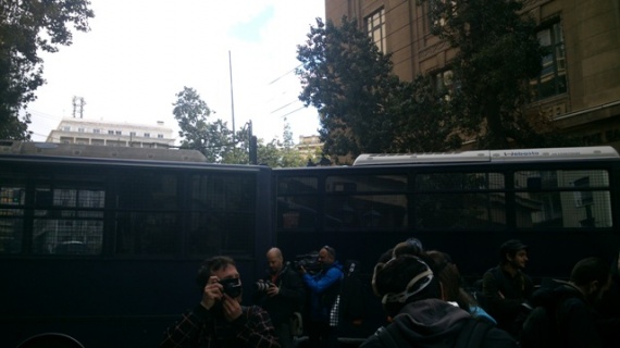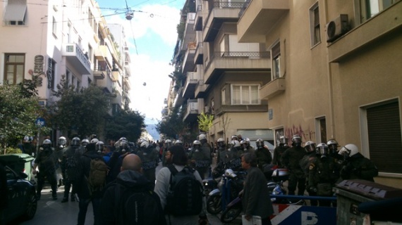 Η αστυνομία έκλεισε τον δρόμο με κλούβες και παρατεταγμένες δυνάμεις των ΜΑΤ στην μέση της Σταδίου.