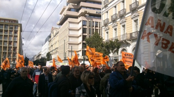 Συνδικάτα και σωματεία εργαζομένων πραγματοποίησαν συλλαλητήρια και πορείες στο κέντρο της Αθήνας, παρά τις απαγορεύσεις της αστυνομίας.