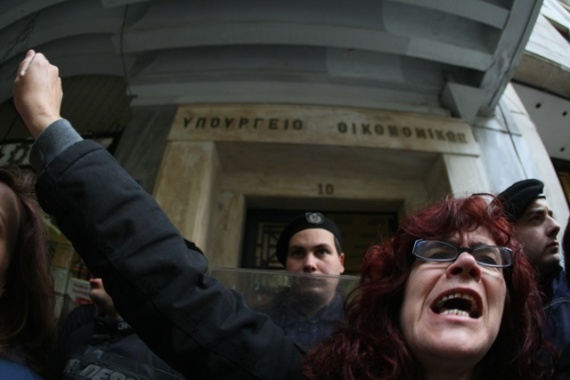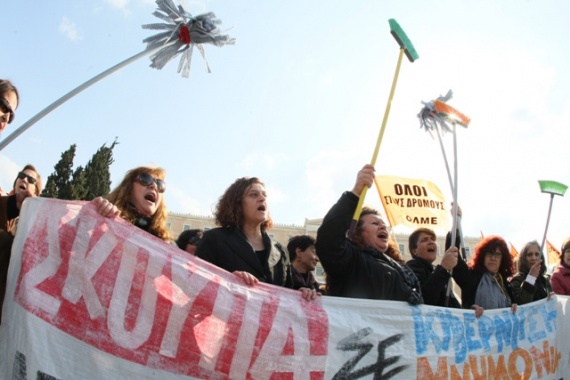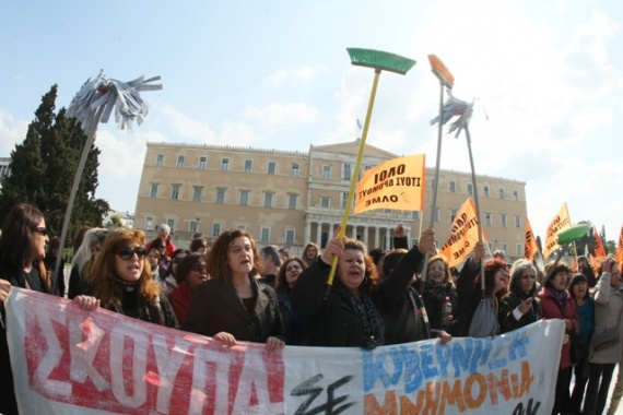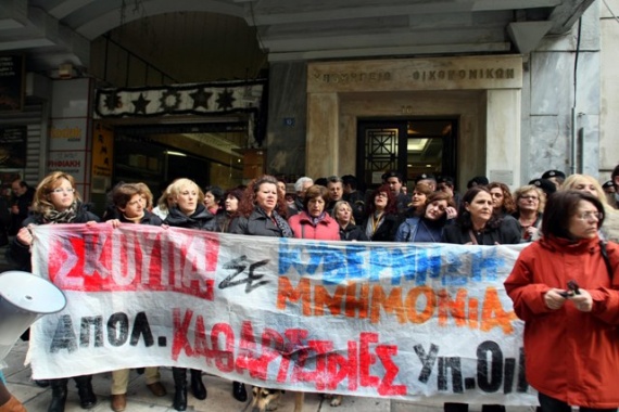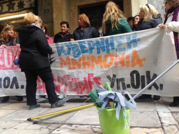 Αργότερα οι καθαρίστριες του ΥΠΟΙΚ συγκεντρώθηκαν στο Σύνταγμα, μαζί με τους καθηγητές της ΟΛΜΕ.