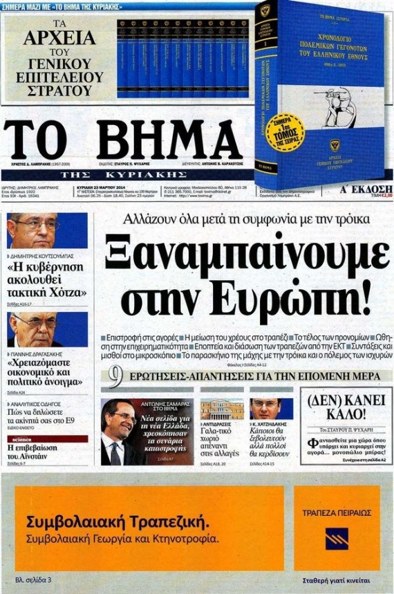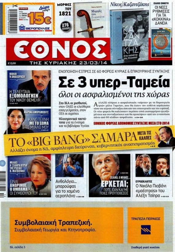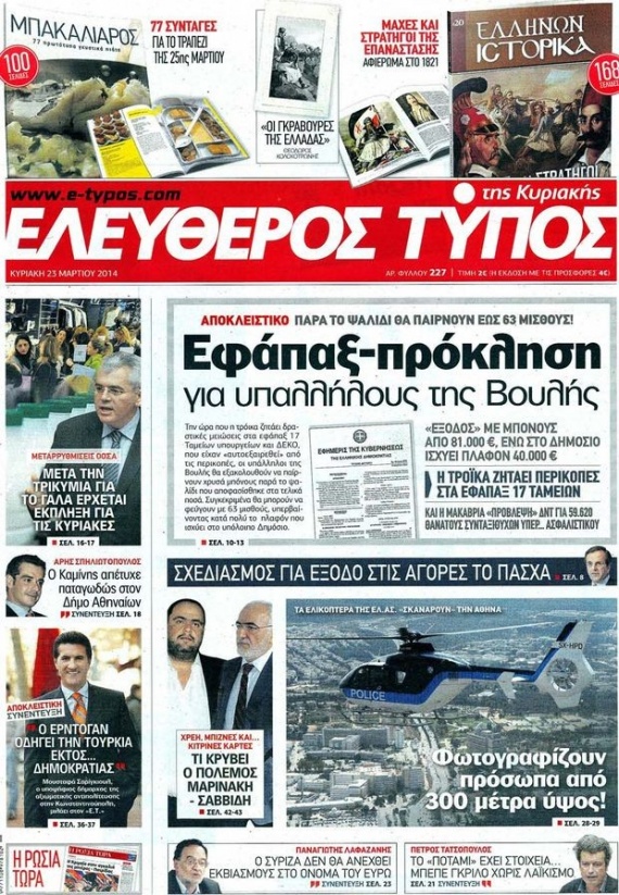 Δείτε στο Ποντίκι τα πρωτοσέλιδα των αυριανών κυριακάτικων εφημερίδων