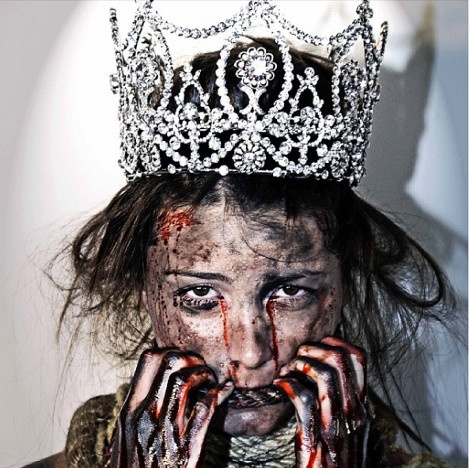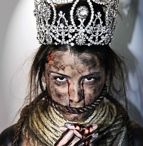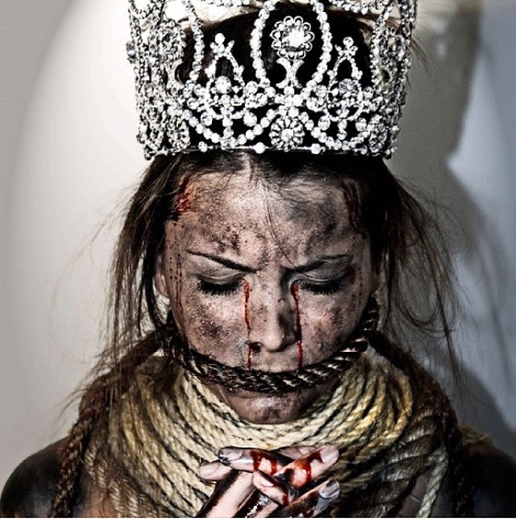 H Fernandez Krupij, η οποία είχε στεφθεί Μις Υφήλιος το 2009, ποζάρει αιματοβαμμένη με το στέμμα της στο πλαίσιο της καμπάνιας «Η Φωνή σου είναι η Δύναμή σου».