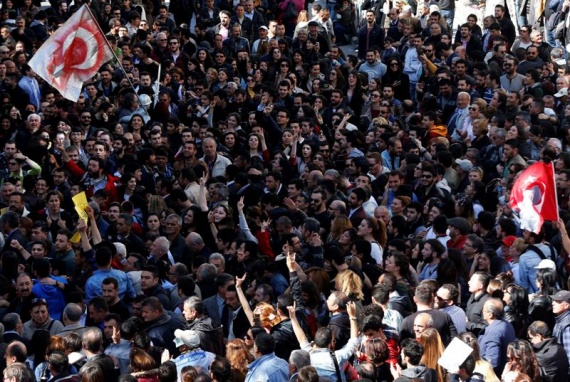 Οι περίπου 2.000 συγκεντρωμένοι, που ζητούν νέα καταμέτρηση των ψήφων στην Άγκυρα, φώναζαν «κλέφτη Ταγίπ», αναφερόμενοι στον τούρκο πρωθυπουργό Ρετζέπ Ταγίπ Ερντογάν, και «YSK, ο λαός είναι μαζί σου», προτού επέμβει η αστυνομία.