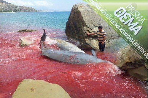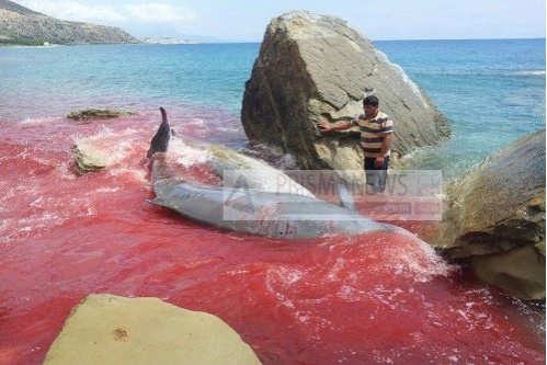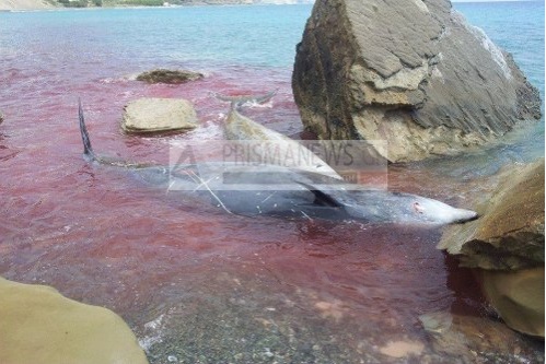 Τραγικές σκηνές εκτυλίχθηκαν στις ακτές της Νότιας Κρήτης, όταν η θάλασσα «μάτωσε» από αιμόφυρτα δελφίνια που εγκλωβίστηκαν στα βράχια της παραλίας στα Τέρτσα.