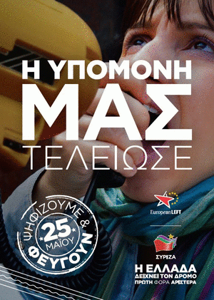 Δυο ταλαιπωρημένα χέρια του μόχθου που ενώνονται σαν σε στάση προσευχής, κυριαρχούν στην αφίσα με την οποία ο ΣΥΡΙΖΑ καλεί τους πολίτες να ψηφίσουν στις 25 Μαϊου.