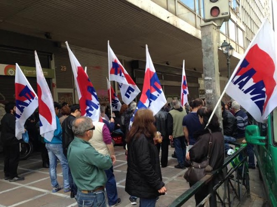 Κινητοποίηση ενάντια στις περικοπές των επιδομάτων τους πραγματοποίησαν τα μέλη της Συντονιστικής Επιτροπής Αγώνα Αναπήρων που πρόσκειται στο ΠΑΜΕ.