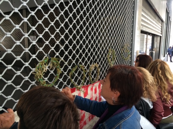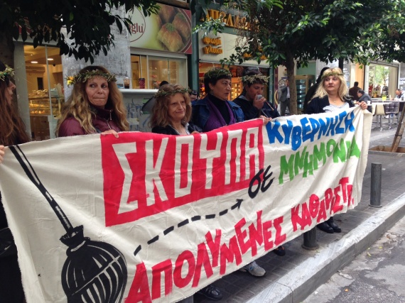 Με «αγκάθινα» στεφάνια στα κεφάλια τους, οι απολυμένες καθαρίστριες του υπουργείου Οικονομικών βρέθηκαν έξω από το κτήριο της οδού Νίκης και διαμαρτυρήθηκαν.