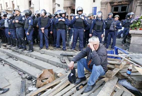 Σύμφωνα με το υπουργείο Εσωτερικών της Ουκρανίας, τα χθεσινά επεισόδια ξεκίνησαν όταν μια διαδήλωση υπέρ της ενότητας της Ουκρανίας δέχθηκε βίαιη επίθεση από φιλορώσους αντάρτες.