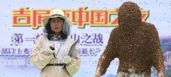 Κι όμως… ένας Κινέζος έσπασε το παγκόσμιο ρεκόρ, καλύπτοντας όλο το σώμα του με 62,1 κιλά μέλισσες για κάτι λιγότερο από μία ώρα!