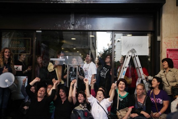 Κινητοποίηση σε μία από τις παράπλευρες εισόδους του ΥΠΟΙΚ επί της Καραγιώργη Σερβίας πραγματοποιούν οι απολυμένες καθαρίστριες του ΥΠΟΙΚ, που ζητούν να εφαρμοστεί η απόφαση του Πρωτοδικείου Αθηνών για την επαναπρόσληψή τους.