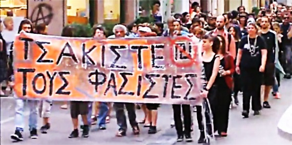 Περίπου 400 άτομα πραγματοποίησαν αντιφασιστική πορεία μέχρι το σημείο, όταν ομάδα 15 κουκουλοφόρων αποκόπηκε από τον κύριο όγκο των διαδηλωτών, πέταξε πέτρες στα παράθυρα των γραφείων και επιτέθηκε κατά των αστυνομικών που βρίσκονταν στην περιοχή.