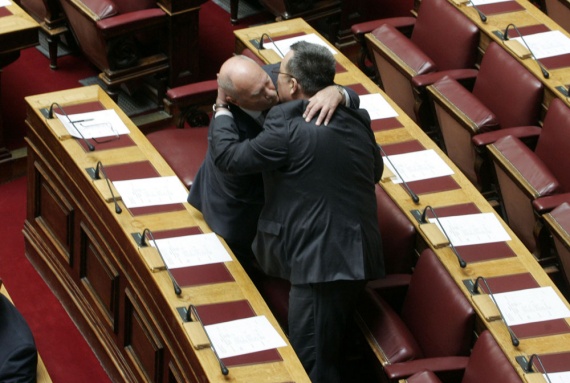 «Τρυφερές» στιγμές είχαν κατά την είσοδό τους στην αίθουσα της Ολομέλειας οι προφυλακισμένοι βουλευτές της Χ.Α, Χρήστος Παππάς και Νίκος Μιχαλολιάκος.