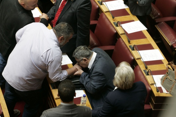 «Τρυφερές» στιγμές είχαν κατά την είσοδό τους στην αίθουσα της Ολομέλειας οι προφυλακισμένοι βουλευτές της Χ.Α, Χρήστος Παππάς και Νίκος Μιχαλολιάκος