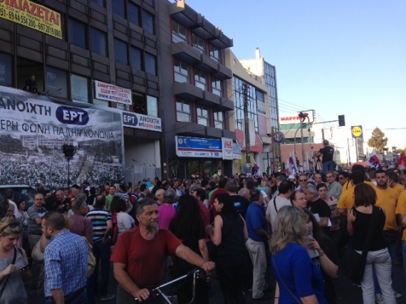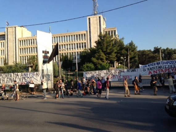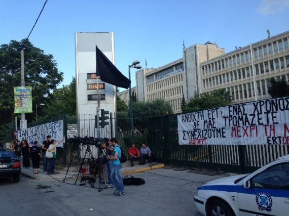 Μεγάλη συγκέντρωση πραγματοποιήθηκε έξω από το Ραδιομέγαρο της Αγίας Παρασκευής, με αφορμή τη συμπλήρωση ενός χρόνου από το αιφνιδιαστικό κλείσιμο της ΕΡΤ.