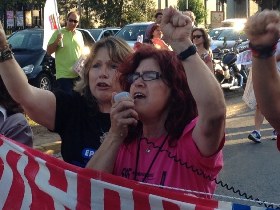 Στις σημερινές κινητοποιήσεις συμμετείχαν και οι πρώην καθαρίστριες του υπουργείου Οικονομικών που αντιδρούν στις απολύσεις και στη διαθεσιμότητα.