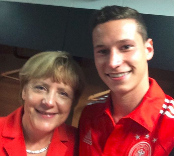 Η Άνγκελα Μέρκελ αφού είδε τη Γερμανία να σαρώνει με 4-0 την Πορτογαλία, πήγε στα αποδυτήρια και φωτογραφήθηκε με όλη την ομάδα βγάζοντας και… selfies.