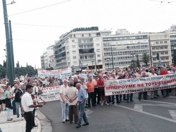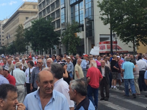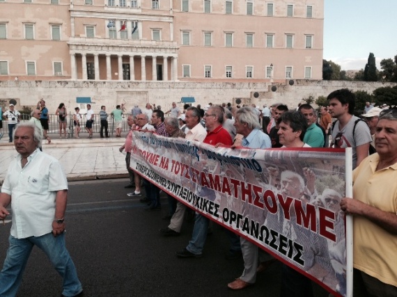 Σε εξέλιξη βρίσκεται μεγάλο πανελλαδικό συλλαλητήριο συνταξιούχων στα Προπύλαια που διοργανώνουν οι συνεργαζόμενες συνταξιουχικές οργανώσεις.