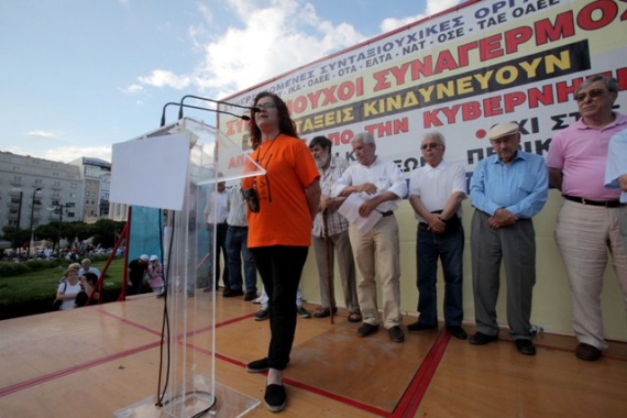 Παρέμβαση στη συγκέντρωση πραγματοποίησαν οι απολυμένες καθαρίστριες του υπουργείο Οικονομικών.