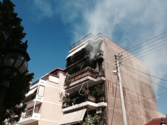 Η πυρκαγιά σύντομα επεκτάθηκε και στο διαμέρισμα του πάνω ορόφου.
