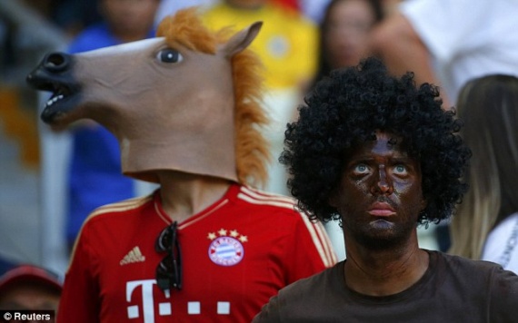 Κάποιες άλλες φωτογραφίες που δείχνουν Γερμανούς φιλάθλους με βαμμένα μαύρα τα πρόσωπά τους και έναν να… φοράει κεφάλι αλόγου, είναι υπό διερεύνηση από την Παγκόσμια Ομοσπονδία, για να διαπιστωθεί κατά πόσο τεκμηριώνουν ρατσιστική συμπεριφορά.