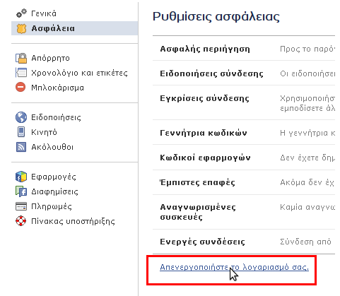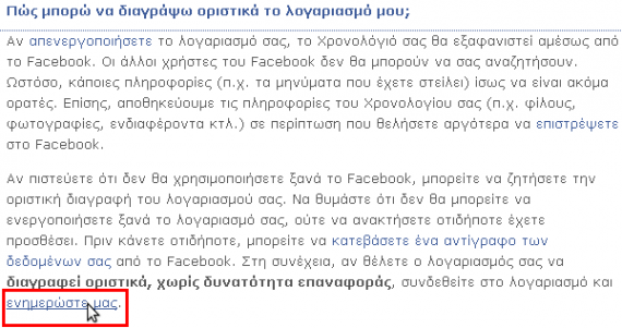 Στο Facebook είναι πολύ εύκολο το να απενεργοποιήσουμε προσωρινά το λογαριασμό μας, σε περίπτωση που θέλουμε να τον επαναφέρουμε αργότερα.