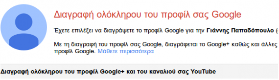 Μπορούμε να διαγράψουμε μόνο το Google+ προφίλ μας, ή και ολόκληρο τον Google λογαριασμό μας.