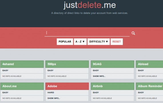 Διαγραφή λογαριασμών με το justdelete.me