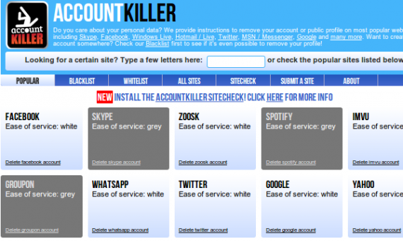 Το πρόβλημα με το Account Killer και το justdelete.me είναι πως πρέπει να θυμόμαστε πως έχουμε λογαριασμό σε κάποιο site για να αναζητήσουμε τη μέθοδο για την οριστική διαγραφή του.
