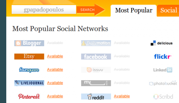 Το Knowem παίρνει τη διαδικασία εντελώς ανάποδα. Εισάγουμε username μας και κάνει αναζήτηση σε περισσότερες από 500 ιστοσελίδες κοινωνικής δικτύωσης για να εμφανίσει πιθανούς λογαριασμούς.