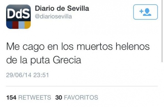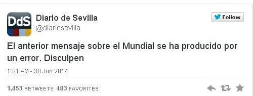 Το παραπάνω μήνυμα εμφανίστηκε για λίγο στο λογαριασμό της ισπανικής εφημερίδας Diario de Sevilla στο Τwitter…