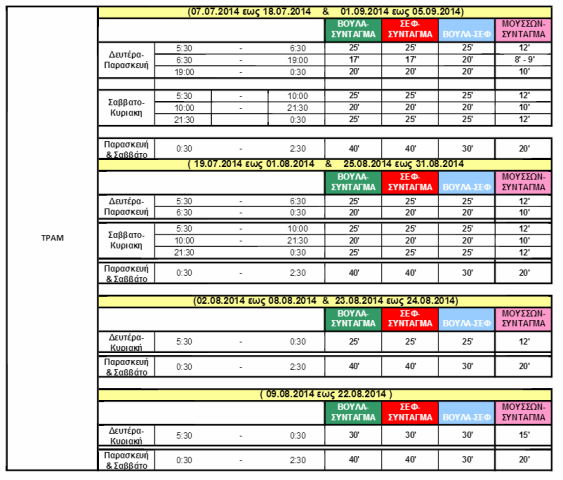 – Από 28 Ιουλίου έως 24 Αυγούστου: Δρομολόγια ανά 10,5 λεπτά όλες τις μέρες της εβδομάδας