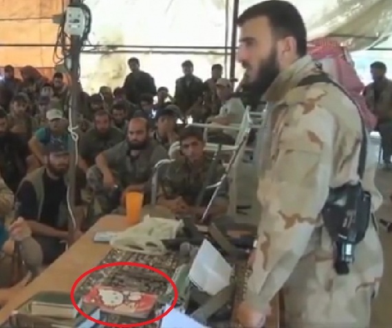 Ένα ασυνήθιστο gadget για «μπαρουτοκαπνισμένο» ισλαμιστή μαχητή χρησιμοποιεί ο αρχηγός της αντάρτικης οργάνωσης «Στρατού του Ισλάμ», ο οποίος εμφανίζεται να μιλά στους μαχητές με σημειωματάριο Hello Kitty.