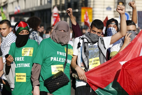 Αψηφώντας τη σχετική απαγόρευση, χιλιάδες διαδηλωτές κατέβηκαν στους δρόμους του Παρισιού για διαδηλώσουν κατά της αιματοχυσίας των Παλαιστινίων στη Λωρίδα της Γάζας.