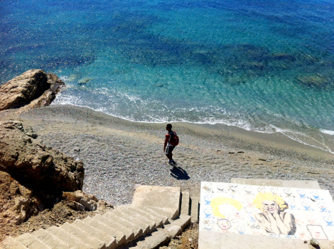 Κοντά στο ναό του Σουνίου, αριστερά της παραλίας βρίσκεται ένα σημείο με βότσαλα, όπου αναγράφονται οι λέξεις «FFK» και «Γυμνός».