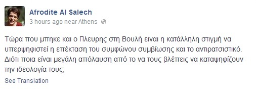 H είδηση μάλλον δεν άρεσε στο στέλεχος του ΠΑΣΟΚ Αφροδίτη Αλ Σάλεχ που σχολίασε σκωπτικά: