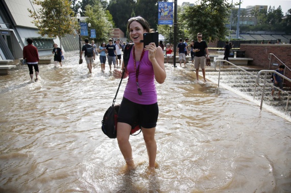 Η καταστροφή πεπαλαιωμένου κεντρικού αγωγού κοντά στις εγκαταστάσεις του πανεπιστημίου του Λος Άντζελες, είχε ως αποτέλεσμα να χυθούν στους γύρω δρόμους εκατομμύρια λίτρα νερού, προκαλώντας σκηνές απείρου κάλλους.