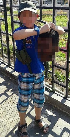 Παγκόσμιο αποτροπιασμό έχει προκαλέσει φωτογραφία που φέρεται να ανέβασε στο Twitter ο πλέον καταζητούμενος φυγάς της Αυστραλίας, Χαλίντ Σαρούφ, και στην οποία απεικονίζεται ο επτάχρονος γιος του να κρατάει το κεφάλι ενός Σύρου στρατιώτη. Το www.topontiki.gr αναδημοσιεύει τη φωτογραφία με κάθε επιφύλαξη από την ιστοσελίδα της Daily Mail.