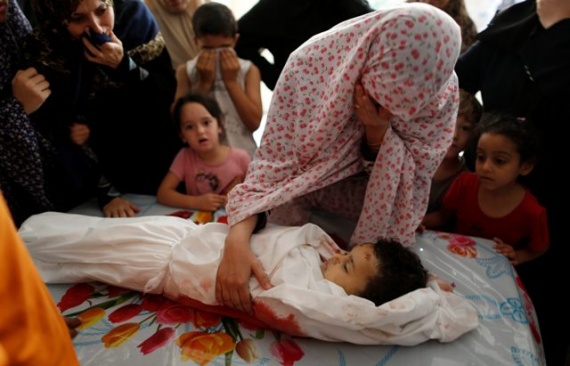 Η σύζυγος και ο γιος του Μοχάμεντ Ντέιφ, του ηγέτη των Ταξιαρχιών αλ Κάσαμ, σκοτώθηκαν το βράδυ της Τρίτης, σε μια επίθεση από την οποία έχασαν επίσης τη ζωή τους άλλη μία γυναίκα και ένα αγόρι 14 ετών. Οκτώ Παλαιστίνιοι, μεταξύ των οποίων τρία παιδιά και μία εγκυμονούσα, σκοτώθηκαν τα ξημερώματα σήμερα μέσα στο σπίτι τους στο Ντέιρ αλ Μπάλαχ ενώ ένα παιδί ηλικίας 4 ετών και ένας 20χρονος έχασαν τη ζωή τους στο Ζεϊτούν, σύμφωνα με τον αλ Κούντρα.