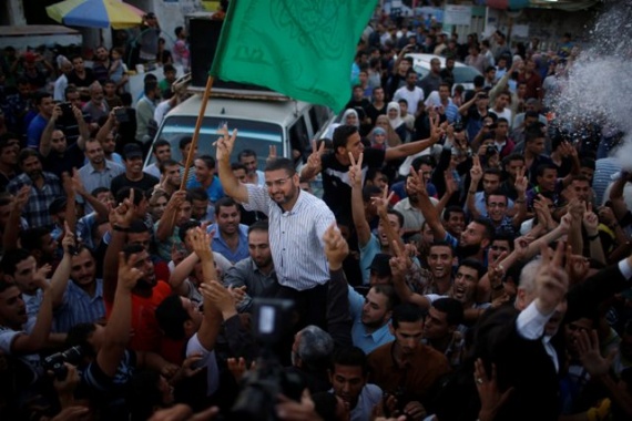 Πανηγυρισμοί ξέσπασαν στη Λωρίδα της Γάζας, με χιλιάδες Παλαιστίνιους να γιορτάζουν τη νίκη, όπως λένε, απέναντι στο Ισραήλ.