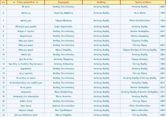 Δείτε τα τραγούδια που είχε συνθέσει: