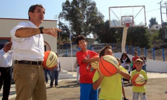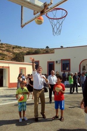 Τις μπασκετικές του ικανότητες αποκάλυψε ο Ανδρέας Λοβέρδος κατά την επίσκεψη του Αγαθονήσι, για την τελετή του αγιασμού στο σχολείο του νησιού.