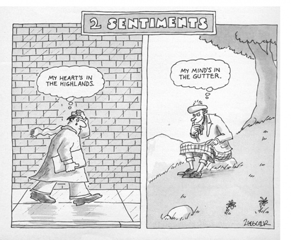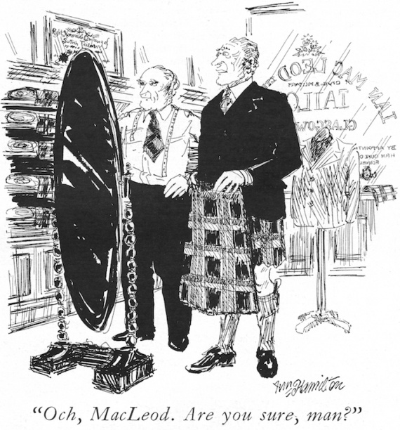 Την ώρα που οι Σκωτσέζοι ψηφίζουν υπέρ ή κατά της ανεξαρτησίας της Σκωτίας, το αμερικανικό περιοδικό New Yorker ανασύρει από το αρχείο του σκίτσα με θέμα τους Σκωτσέζους.