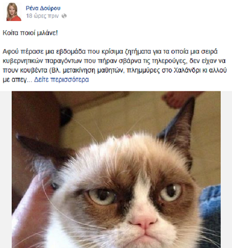 Μέσα από τη δημοφιλή πλατφόρμα κοινωνικής δικτύωσης η κυρία Δούρου αναφέρει ότι άργησε να απαντήσει επειδή αρνείται η ατζέντα να μπαίνει «από τους επαγγελματίες των τηλεπαραθύρων… και τους απανταχού κονδυλοφόρους που με περίσσιο σεξισμό μοιρολογούν " τι ζημιά πάθαμε, έχουμε γυναίκα στο τιμόνι της περιφέρειας. Ας την φάμε!"».