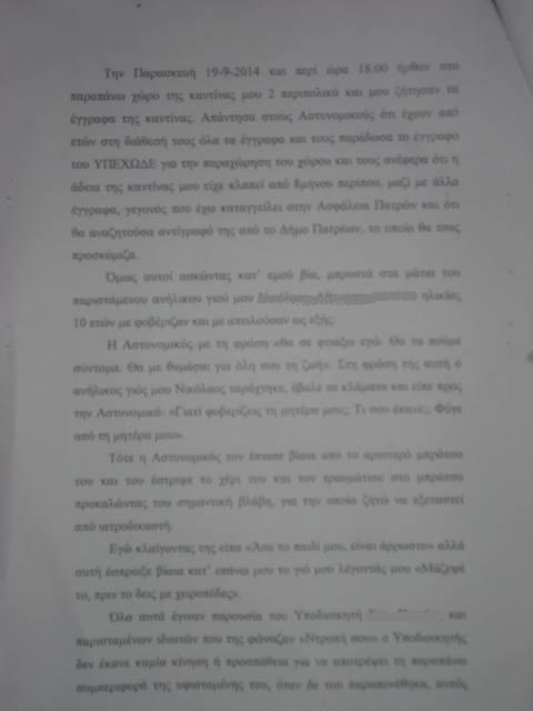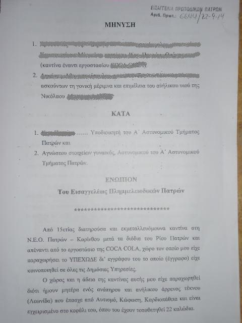 Στη συνέχεια, η μητέρα έκανε μήνυση στον υποδιοικητή του Α’ Αστυνομικού Τμήματος Πατρών, αλλά και στην ίδια την αστυνομικό.