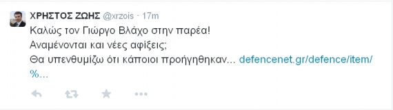 Την τοποθέτηση Βλάχου «καλωσόρισε» ο Χρήστος Ζώης, ο οποίος έγραψε στην προσωπική του σελίδα στο facebook: